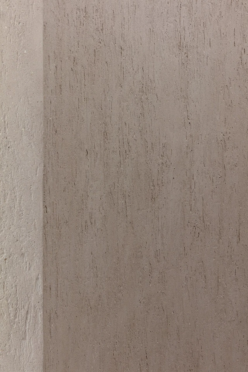 Een minerale afwerking geïnspireerd op travertijn. Open poriën, natuurlijke imperfecties en een uitgesproken steenkarakter vormen de basis voor sobere elegantie.