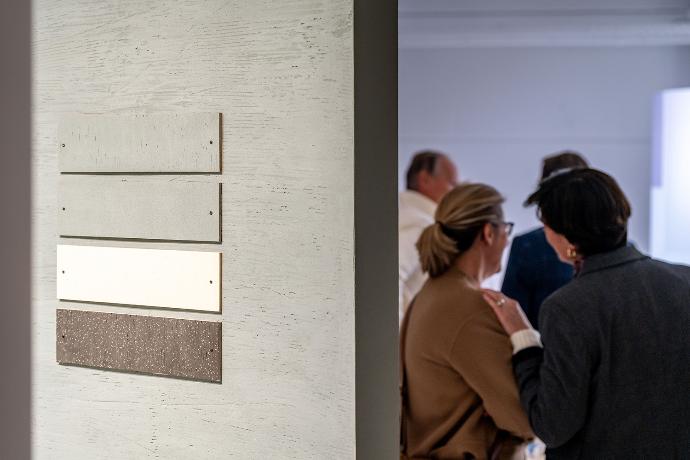 Zowel Furrows als Veils zijn flexibel in uitvoering. Ze kunnen ingevuld worden met een veelheid aan natuurlijke mineralen en zijn inkleurbaar in uiteenlopende kleurtonen. Wij selecteerden reeds een aantal karaktervolle combinaties, waaronder Alpengroen, als inspiratie voor ontwerpers.